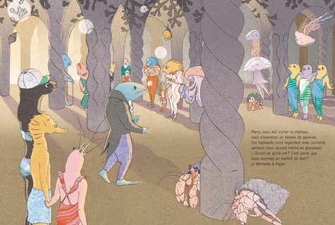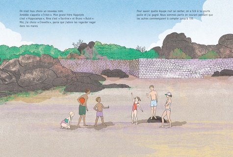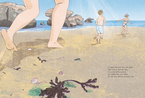 L'été est revenu sur la petite plage bretonne qui résonne des cris de joie des enfants. Pour les six copains, c'est enfin le temps des vacances et des retrouvailles : les glaces coulent sur les doigts et on rêve d'aventures. Et pour ça, pas besoin de partir très loin : il suffit d'escalader les rochers pour voir le monde autrement, découvrir des lieux mystérieux et faire la connaissance de personnages hauts-en-couleur. Un album teinté de fantastique où rêve, imaginaire et réalité sont intimement liés... Cet album est écrit et illustré par Elodie Bouédec. Pour réaliser ses images, son outil graphique principal est le sable, ce qui donne une couleur toute particulière à cet album onirique et empreint d'enfance.