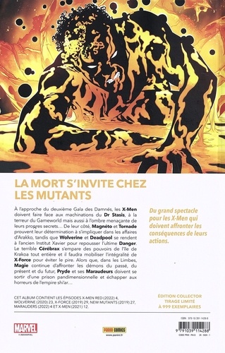 Plusieurs sagas touchent à leur fin ! Les X-Men doivent faire face à des menaces provenant de tous les côtés, tandis que Wolverine et Deadpool reviennent aux origines du rêve de Charles Xavier à la recherche de Danger. Sur Mars, Magnéto, Tornade et Solar ont fort à faire pour préserver la nouvelle société de mutants qui vit sur la planète rouge, et Diablo et son équipe vivent une aventure atypique dans le plan astral. Avec aussi les Maraudeurs et les Nouveaux Mutants ! Les séries mutantes ne se sont jamais aussi bien portées ! Al Ewing, Si Spurrier et bien d'autres artistes, ont apporté leurs talents de scénaristes à l'univers mis en place par Jonathan Hickman et le succès ne se dément pas. Le rythme bimensuel se poursuit pour vous permettre de faire le tour de toutes les nouveautés mutantes chaque mois !