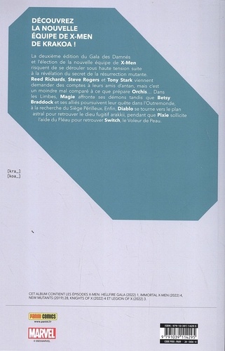 C'est le retour du Gala des Damnés ! Les mutants mènent la danse dans l'univers Marvel et se préparent à présenter au monde une nouvelle équipe. Pour Emma Frost, le succès de cet évènement est plus important que tout, mais quelqu'un pourrait bien gâcher la fête. Pour les Nouveaux Mutants, c'est la fin d'une époque tandis qu'Illyana affronte littéralement ses démons. Et Betsy Braddock tente toujours de retrouver le Portail du Péril. Le Gala des Damnés a été un épisode marquant dans la saga mutante en 2022, soyez sûrs qu'il en sera de même en 2023 ! Tous les éléments se mettent en place avant un évènement crucial le mois prochain : la guerre totale contre les Eternels ! Observez donc de près la série Immortal X-Men, scénarisée par Kieron Gillen, l'architecte de Judgment Day.