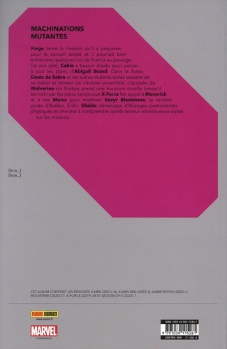 Cable tente le tout pour le tout pour contrer les plans d'Abigail Brand. Quelqu'un a trahi Wolverine... et cela va tout changer ! Dents de Sabre et ses compagnons de cellule tentent de s'évader. X-Force doit défendre Arakko contre le pirate Sevyr Blackmore. Diablo est victime d'une terrible transformation. Et sur quelle mystérieuse mission travaille Forge ? Les meilleurs auteurs Marvel continuent de s'amuser avec l'univers mutant redéfini par Jonathan Hickman dans House of X / Powers of X. Et les lecteurs continuent d'être au rendez-vous pour suivre l'actualité mutante, en version brochée ou collector cartonnée.