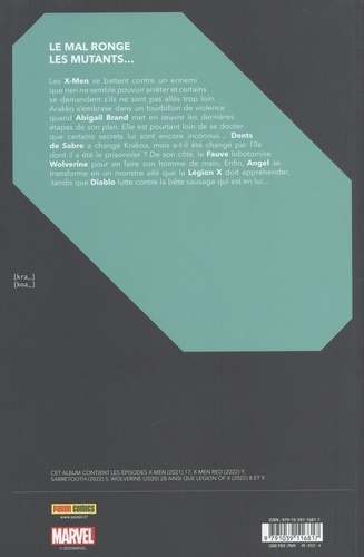 Le mal ronge les mutants... Les X-Men se battent contre un ennemi que rien ne semble pouvoir arrêter et certains se demandent s'ils ne sont pas allés trop loin. Arakko s'embrase dans un tourbillon de violence quand Abigail Brand met en oeuvre les dernières étapes de son plan. Elle est pourtant loin de se douter que certains secrets lui sont encore inconnus... Dents de Sabre a changé Krakoa, mais a-t-il été changé par l'île dont il a été le prisonnier ? De son côté, le Fauve lobotomise Wolverine pour en faire son homme de main. Enfin, Angel se transforme en un monstre ailé que la Légion X doit appréhender, tandis que Diablo lutte contre la bête sauvage qui est en lui...