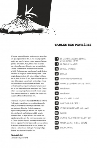 Mêlant souvenirs, sensations et rêves éveillés, ce recueil d'histoires courtes plonge le lecteur dans les ruelles d'un Brésil urbain et mystérieux. Amour, philosophie, amitié, deuil, ces récits, tour à tour dessinés et écrits par les frères Moon et Ba préfigurent déjà le futur chef-d'œuvre que sera Daytripper, quelques années plus tard. Contenu : De : Tales Hardcover Edition