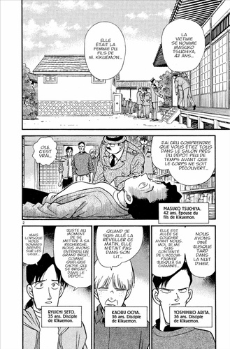Enigmes principales : Trois ruses. Mini-enquête des Détectives- Boys. L'horloge qui... Les acteurs réunis. Un jour, Kogoro Mouri, devenu grâce à Conan la véritable star des détectives, est contacté par le célèbre acteur "Kosaburo Hijikata" et accompagne ce dernier à son appartement. C'est là que M. Hijikata, en compagnie de Kogoro, Ran et Conan, voit son épouse Isami s'effondrer sur le balcon de leur voisin, Okita, jeune acteur en devenir. L'identité du coupable ne semble pas laisser de doute... Pourtant, Conan doute. La mère de Ran est de retour. Une enquête qui se résout avec des jeux de mots : pas simple...