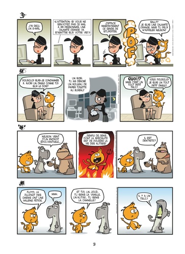 Nelson, c'est l'insupportable diablotin qui vient s'incruster dans la vie de Julie, une jeune et jolie célibataire, et de Floyd, un labrador engourdi. Mais attention, personne n'est à l'abri de cette malédiction orange ! Nelson a largement assez de défauts pour dynamiter le quotidien de tous les infortunés qui croisent son chemin...