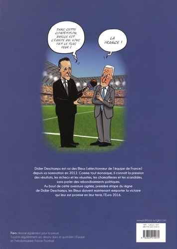 Pénétrez les coulisses de l'équipe de France sous le règne de Deschamps avec Faro, dessinateur de l'Equipe et de France football, observateur avisé des péripéties du football qu'il croque depuis de nombreuses années pour la presse.