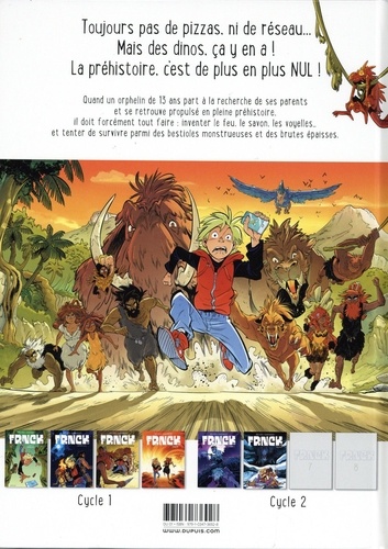 Toujours pas de pizzas, ni de réseau... Mais des dinos, ça y en a ! La préhistoire, c'est de plus en plus NUL ! Quand un orphelin de 13 ans part à la recherche de ses parents et se retrouve propulsé en pleine préhistoire, il doit forcément tout faire : inventer le feu, le savon, les voyelles... et tenter de survivre parmi des bestioles monstrueuses et des brutes épaisses.