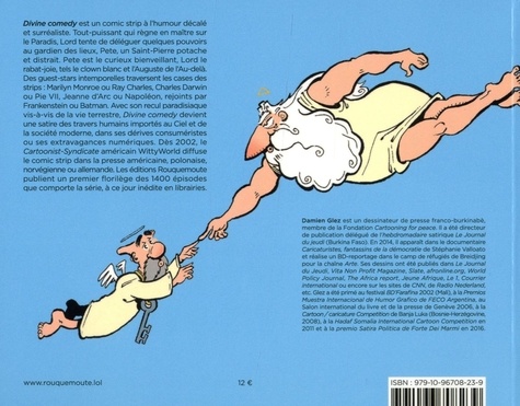 Divine comedy est un comic strip à l'humour décalé et surréaliste. Tout-puissant qui règne en maître sur le Paradis, Lord tente de déléguer quelques pouvoirs au gardien des lieux, Pete, un Saint-Pierre potache et distrait. Pete est le curieux bienveillant, Lord le rabat-joie, tels le clown blanc et l'Auguste de l'Au-delà. Des guest-stars intemporelles traversent les cases des strips : Marilyn Monroe ou Ray Charles, Charles Darwin ou Pie VII, Jeanne d'Arc ou Napoléon, rejoints par Frankenstein ou Batman. Avec son recul paradisiaque vis-à-vis de la vie terrestre, Divine comedy devient une satire des travers humains importés au Ciel et de la société moderne, dans ses dérives consuméristes ou ses extravagances numériques. Dès 2002, le Cartoonist-Syndicate américain WittyWorld diffuse le comic strip dans la presse américaine, polonaise, norvégienne ou allemande. Les éditions Rouquemoute publient un premier florilège des 1400 épisodes que comporte la série, à ce jour inédite en librairies.