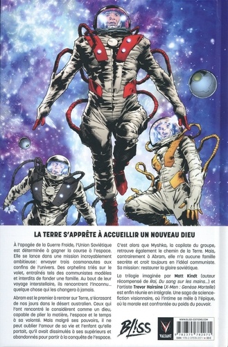La Terre s'apprête à accueillir un nouveau dieu. A l'apogée de la Guerre Froide, l'Union Soviétique est déterminée à gagner la course à l'espace. Elle se lance dans une mission incroyablement ambitieuse : envoyer trois cosmonautes aux confins de l'univers. Des orphelins triés sur le volet, entraînés tels des communistes modèles et interdits de fonder une famille. Au bout de leur voyage interstellaire, ils rencontrent l'Inconnu... quelque chose qui les changera à jamais. Abram est le premier à rentrer sur Terre, s'écrasant de nos jours dans le désert australien. Ceux qui l'ont rencontré le considèrent comme un dieu, capable de plier la matière, l'espace et le temps à sa volonté. Mais malgré ses pouvoirs, il ne peut oublier l'amour de sa vie et l'enfant qu'elle portait, qu'il avait dissimulés à ses supérieurs et abandonnés pour partir à la conquête de l'espace. C'est alors que Myshka, la copilote du groupe, retrouve également le chemin de la Terre. Mais, contrairement à Abram, elle n'a aucune famille secrète et croit toujours en l'idéal communiste. Sa mission : restaurer la gloire soviétique. La trilogie imaginée par Matt Kindt (auteur récompensé de Roi, Du sang sur les mains...) et l'artiste Trevor Hairsine (X-Men : Genèse Mortelle) est enfin réunie en intégrale. Une saga de science-fiction visionnaire, où l'intime se mêle à l'épique, où la morale est confrontée au poids du pouvoir.