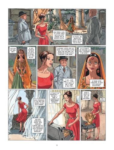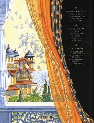 Kim Nelson a rendez-vous au palais d'Eschnapur avec une femme étrange à l'âge indéfini, la Rani. Alors qu'elle n'était encore qu'une enfant, celle-ci fut victime d'une malédiction. Depuis, elle est condamnée à vieillir dans son corps de jeune fille. Le sort sera levé quand elle absorbera un liquide que renferme une perle noire. Jadis, ce contrepoison fut emporté jusqu'en Afrique par Jade, la djinn. Jade avait promis qu'elle reviendrait. Elle n'est jamais revenue. La Rani propose à Kim de partir à la recherche de cette perle. Si Kim réussit à la retrouver, elle aura droit au fameux trésor ottoman. Celui qu'elle cherche depuis si longtemps et qu'elle devra partager avec Ebu Sarki, un homme cruel qu'elle aurait préféré ne jamais revoir. Dernier album du volet indien de Djinn, qui s'insère chronologiquement entre le cycle ottoman et le cycle africain de la saga, cet album est une réflexion sur " les vertiges du temps " et " les jeux de miroir qui accompagnent toute vie ". Kim est-elle une djinn ? Parviendra-t-elle au terme de sa quête ? Les voix du passé traceront sa route, et les réponses se trouvent dans ces pages...