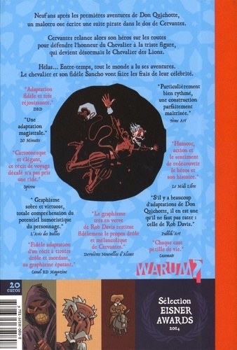 Neuf ans après les premières aventures de Don Quichotte, un malotru ose écrire une suite pirate dans le dos de Cervantes. Cervantes relance alors son héros sur les routes pour défendre l'honneur du Chevalier à la triste figure, qui devient désormais le Chevalier des Lions. Hélas... Entre-temps, tout le monde a lu ses aventures. Le chevalier et son fidèle Sancho vont faire les frais de leur célébrité.