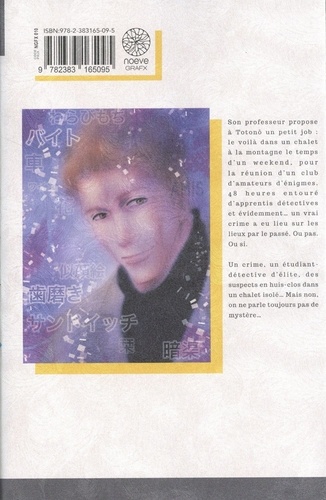 Son professeur propose à Totonô un petit job : le voilà dans un chalet à la montagne le temps d'un weekend, pour la réunion d'un club d'amateurs d'énigmes. 48 heures entouré d'apprentis détectives et évidemment... un vrai crime a eu lieu sur les lieux par le passé. Ou pas. Ou si. Un crime, un étudiant-détective d'élite, des suspects en huis-clos dans un chalet isolé... Mais non, on ne parle toujours pas de mystère...