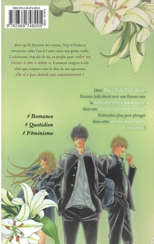 Alors qu'ils fuyaient des voyous, Niji et Gaku se retrouvent collés l'un à l'autre dans une petite ruelle. L'adolescent, trop sûr de lui, en profite pou voler un baiser à son "amie". Comment réagira-t-elle alors que, toujours sous le choc de son agression, elle n'a pas donné son consentement ?