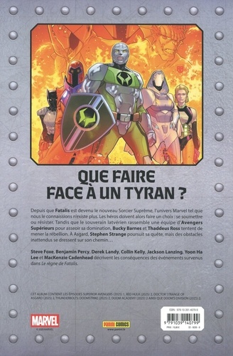 Depuis que Fatalis est devenu le nouveau Sorcier Suprême, l'univers Marvel tel que nous le connaissions n'existe plus. Les héros doivent alors faire un choix : se soumettre ou résister. Tandis que le souverain latvérien rassemble une équipe d'Avengers Supérieurs pour asseoir sa domination, Bucky Barnes et Thaddeus Ross tentent de mener la rébellion. A Asgard, Stephen Strange poursuit sa quête, mais des obstacles inattendus se dressent sur son chemin... Steve Foxe, Benjamin Percy, Derek Landy, Collin Kelly, Jackson Laming, Yoon Ha Lee et MacKenzie Cadenhead décrivent les conséquences des événements survenus dans Le règne de Fatalis.