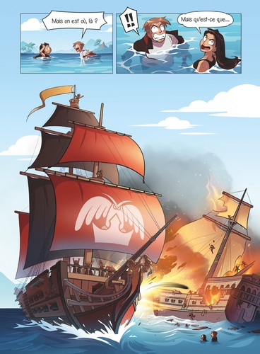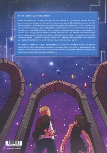 Dooms et Sora au pays des pirates ! Grâce au coffre trouvé dans les bois et aux pierres du Cauchemar, Dooms et Sora peuvent désormais passer d'une dimension à une autre. Et cette fois, ils vont faire le grand plongeon ! En atterrissant au milieu d'un gigantesque océan, ils se font embarquer sur un malentendu par... des pirates ! Fait prisonniers, ils n'auront d'autres choix que de se rallier au reste de l'équipage et de troquer leurs habits stylés pour un accoutrement un peu plus vintage. Pour quitter ce monde, il leur faut au plus vite trouver une nouvelle pierre. Mais avant cela, ils vont devoir affronter les corvées et le regard louche des autres matelots. Comment faire pour se sortir de ce pétrin ? Ils ne peuvent tout de même pas passer le reste de leur vie à nettoyer le pont de ce vieux galion... Dans ce second tome nos deux héros côtoient l'univers de la piraterie pour une aventure délirante ! Un récit très drôle et captivant, toujours mis en scène par le dessin punchy et manga de Dreamy, qui séduira autant les trois millions d'abonnés de Dooms et Sora que tous les amateurs d'aventures fantastiques.