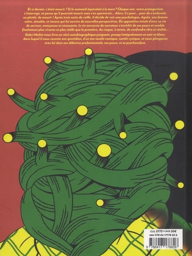 Et si dormir, c'était mourir ? Si le sommeil équivalait à la mort ? chaque soir, notre protagoniste s'interroge, et pense qu'il pourrait mourir sans s'en apercevoir... Alors, il a peur... peur de s'endormir, ou plutôt, de mourir ! Après trois nuits de veille, il décide de voir une psychologue. Agnès, une femme aimable, et tenace qui lui ouvrira de nouvelles perspectives. En opposition totale d'avec sa vie de serveur, ennuyeuse et stressante, la vie nocturne du narrateur s'enrichit de ses peurs en semble finalement plus vivante et plus réelle que la première. Au risque, à terme, de confondre rêve et réalité...