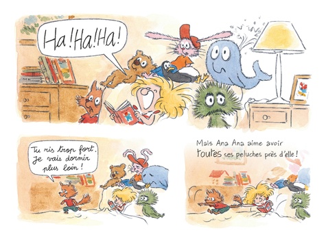 "Douce nuit" est le 1er tome des histoires d'Ana Ana, la petite soeur de l'irrésistible Pico Bogue. La fillette, à la tête d'une armée de doudous, n'a rien à envier à son grand frère : c'est à la baguette qu'elle mène sa joyeuse troupe dans une farandole de bêtises... Il est déjà bien tard, et Ana Ana est encore en train de lire. Ses parents lui ont pourtant demandé d'éteindre la lumière depuis longtemps. Ses doudous, d'ailleurs, aimeraient bien dormir. Mais la petite fille, un brin tyrannique, n'éteint pas sa lampe...
