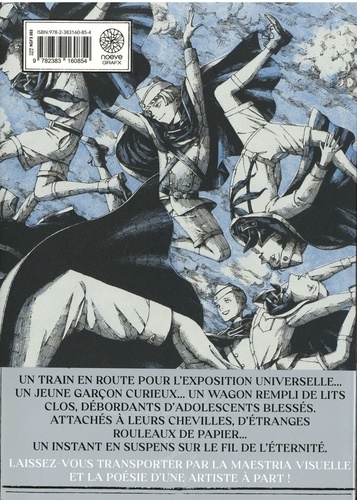 Un train en route pour l'exposition universelle... Un jeune garçon curieux... Un wagon rempli de lits clos, débordants d'adolescents blesses. Attaches à leurs chevilles, d'étranges rouleaux de papier... Un instant en suspens sur le fil de l'éternité.