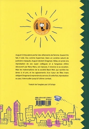 "Il n'y a pas de super-héros plus super que Dragman, le héros travesti de Steven Appleby. Appelé aussi Dolly Marie, il mène contre les voleurs d'âmes de Black Mist un combat apocalyptique, névrotique, tendre, drôle - et brillamment dessiné". Posy SimmondsDepuis qu'il a trouvé, adolescent, un bas de sa mère dans le sofa, August Crimp a découvert deux choses. La première est qu'il adore porter des vêtements de femme. La seconde est que lorsqu'il le fait, il devient capable de voler. Oui, comme un super-héros ! Hélas, cette passion un peu obsessionnelle est contrariée par la peur du ridicule et de la réprobation générale. Si sa mère, puis sa femme venaient à l'apprendre, c'en serait fait de lui. Du coup, il range sagement dans des cartons les tenues et souvenirs de Dragman, le nom de guerre qu'il s'était donné. De toute façon, la ville regorge de justiciers masqués. Mais voici que Cherry Mingle, la petite fille qu'il a sauvée d'une terrible chute du toit du Musée d'Art moderne un jour qu'il s'y était rendu en Dragman, réapparait dans sa vie. Elle a encore besoin de lui, cette fois pour aider ses parents qui ont vendu leurs âmes à la mystérieuse compagnie Black Mist pour lui payer ses études. Dragman reprend donc du service et l'aventure (même si elle finit bien) ne sera pas de tout repos... Comment partager sa vie entre le rôle de bon père de famille et celui de super-héros quand tous vos pouvoirs tiennent au fait de vous travestir en femme ? Telle est la question. Le coming-out et la confession de cette passion très singulière produisent le roman graphique le plus étonnant, détonnant et délirant de l'année...
