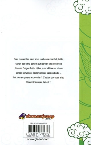 Pour ressusciter leurs amis tombés au combat, Krilin, Gohan et Bulma partent sur Namek à la recherche d'autres Dragon Balls. Hélas, le cruel Freezer et son armée convoitent également ces Dragon Balls... Qui s'en emparera en premier ? C'est ce que vous allez découvrir dans ce tome 7 !!