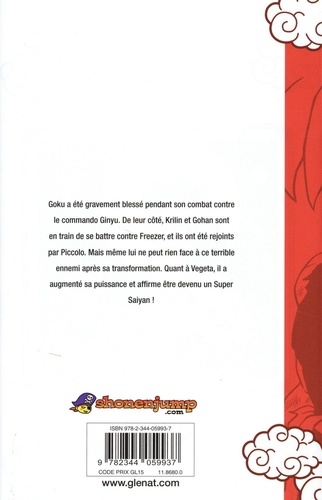 Goku a été gravement blessé pendant son combat contre le commando Ginyu. De leur côté, Krilin et Gohan sont en train de se battre contre Freezer, et ils ont été rejoints par Piccolo mais même lui ne peut rien face à ce terrible ennemi après sa transformation. Quant à Vegeta, il a augmenté sa puissance et affirme être devenu un Super Saiyan !