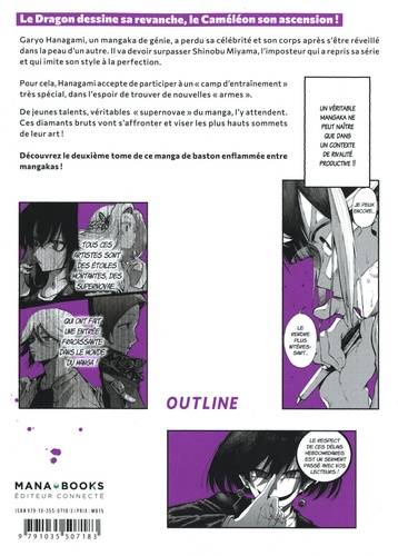 Le Dragon dessine sa revanche, le Caméléon son ascension ! Garyo Hanagami, un mangaka de génie, a perdu sa célébrité et son corps après s'être réveillé dans la peau d'un autre. Il va devoir surpasser Shinobu Miyama, l'imposteur qui a repris sa série et qui imite son style à la perfection. Pour cela, Hanagami accepte de participer à un " camp d'entraînement " très spécial, dans l'espoir de trouver de nouvelles " armes ". De jeunes talents, véritables " supernovae " du manga, l'y attendent. Ces diamants bruts vont s'affronter et viser les plus hauts sommets de leur art ! Découvrez le deuxième tome de ce manga de baston enflammée entre mangakas !