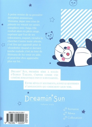 Dreamin' Sun, première série à succès d'Ichigo Takano, s'impose comme une comédie romantique pop et survitaminée. Entre rêves et sentiments, suivez le quotidien d'adolescents qui cherchent leur voie. A peine remise de sa première déception amoureuse, Shimana pique une crise de jalousie en voyant ses amies complices avec Taiga. Elle s'enfuit alors en plein orage, espérant que l'un de ses colocataires, inquiet, viendra la chercher. Contre toute attente, c'est Zen qui apparaît pour la réconforter. Quand ce dernier tombe malade, c'est au tour de Shimana de lui venir en aide, et peut-être d'en apprendre plus sur lui...