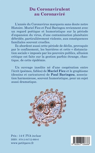 L'année du Coronavirus marquera sans doute notre Histoire. Muriel Fiez et Paul Baringou reviennent avec un regard poétique et humoristique sur la période d'expansion du virus, d'une contamination planétaire débridée, particulièrement violente, aux conséquences familiales souvent cruelles. Ils abordent aussi cette période de déclin, provoquée par le confinement, les barrières et cette "distanciation sociale" imposés par les pouvoirs publics, allusion critique est faite sur la gestion parfois étrange, chaotique, de cette épidémie.