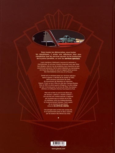 Entrez dans les cercles fermés des services spéciaux Paris, 1957. Sous chaque régime, les services secrets ont oeuvré dans l'ombre. Mais qu'en est-il de ces services très spéciaux, ayant pour mission d'exécuter des crimes commandités par l'Etat ? Dan a travaillé pour eux et en garde de mauvais souvenirs. A la tête d'une maison close, il voit le passé resurgir. Il semblerait que l'on ait besoin encore une fois de ses services dans le contexte de la crise algérienne. Piégé, le voilà qui replonge dans le sale boulot. Mais s'il n'a jamais failli à une mission par le passé, il lui reste des séquelles qui pourraient le compromettre aujourd'hui. Quant à ces cibles, comment savoir s'il s'agit de truands ou de diplomates devenus nuisibles ? Bientôt Dan va se rapprocher du commissaire Brulls. Toujours sous les ordres du " Gros ", qui reçoit lui-même des instructions d'en haut, Dan s'enlise dans des affaires de plus en plus douteuses jusqu'à la mission de trop. Il va alors reprendre les choses en main, à sa manière ...