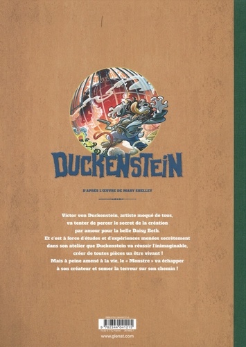 Une créature mythique. Un chef d'oeuvre de la littérature. Au tournant du XIXe siècle, au pôle Nord, un explorateur rencontre le jeune scientifique et artiste désabusé Victor von Duckenstein. Celui-ci lui révèle rapidement qu'il est à la poursuite d'un dangereux monstre qu'il a lui-même créé - une construction de carton et de peinture vivante, créée par d'anciens moyens alchimiques combinés aux progrès scientifiques modernes. Victor et la créature, Growl, se relaient pour raconter leur histoire aussi effrayante qu'extraordinaire... Après Moby Dick et L'Ile aux trésors, retrouvez un autre grand classique de la littérature internationale façon Disney ! Pour cette adaptation, les auteurs s'éloignent du mythe hollywoodien pour revenir aux sources du roman original de Mary Shelley.