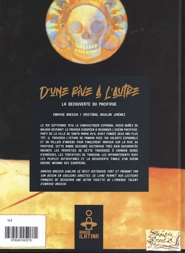 Le 1er septembre 1513, le conquistador espagnol Vasco Nunez de Balboa devenait le premier européen à regarder l'Océan Pacifique. Parti de la ville de Santa María qu'il avait fondée deux ans plus tôt, il traversa l'isthme de Panama avec 190 soldats espagnols et un millier d'indiens pour finalement arriver sur la rive du Pacifique. Cette bande dessinée historique très bien documentée raconte les péripéties de cette traversée ô combien semée d'embûches, les tentatives de trahison, les affrontements avec les peuples autochtones et la découverte finale d'un Océan encore inconnu des Européens.