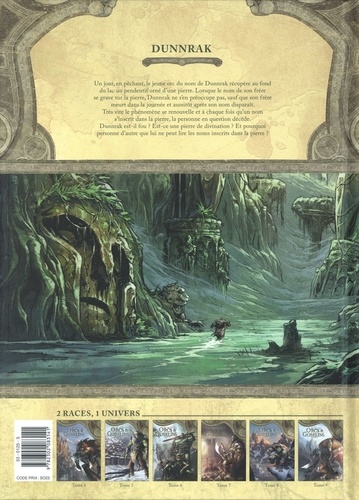 " C'est en observant la lumière sur les reflets du lac que je l'ai remarqué. C'était là, au fond. Ca me faisait de l'oeil, ça brillait. Mais le trouble de l'eau m'empêchait de voir de quoi il s'agissait précisément. Alors, je me suis laissé aller vers le fond. " Un jour, en pêchant, Dunnrak l'orc récupère au fond du lac un pendentif. Lorsque le nom de son frère se grave sur la pierre, Dunnrak ne s'en préoccupe pas, sauf que son frère meurt dans la journée et aussitôt son nom disparaît. Très vite le phénomène se renouvelle. Dunnrak est-il fou ? Est-ce une pierre de divination ? Et pourquoi personne d'autre que lui ne peut lire les noms inscrits dans la pierre ?