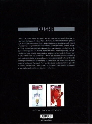 Les pouvoirs de l'esprit : les enfants prodiges de l'URSS. Dans l'URSS de 1937, en plein milieu des purges staliniennes, le neuropsychologue et scientifique Dimitri Andropovich Loujine est libéré du goulag où il avait été condamné pour des actes anti-révolutionnaires. On lui ordonne de reprendre ses expériences scientifiques au sein du Projet YM afin de pouvoir utiliser les capacités psychiques prodigieuses de ceux qu'on appelle les Dusha. Après neuf ans dans le goulag, l'esprit de Loujine s'est altéré, il est devenu un homme torturé et obsédé par Martina Baltakis, son sujet le plus doué, qui possède un don aussi rare qu'inquiétant. Loujine commence à recruter d'anciens survivants du Projet YM, et bien qu'il obéisse aux ordres du Parti, c'est surtout dans le but de mettre à profit les moyens qu'on lui offre pour retrouver Martina. Celle-ci a survécu aux massacres des Dusha ordonnés par le gouvernement en 1928 et a pu refaire sa vie. Elle s'est installée en Sibérie et s'est mariée avec un boxeur avec qui elle a eu une petite fille, Likha, dont les pouvoirs psychiques semblent encore plus puissants que ceux de sa mère. Grâce à un savant mélange d'Histoire et de science-fiction, Francisco Ruizge nous plonge au coeur de la Russie soviétique pour découvrir d'étranges expérimentations sur des enfants dotés d'incroyables pouvoirs que les pontes du Parti rêvent de pouvoir instrumentaliser. Un diptyque saisissant dont l'univers graphique clinique et froid donne à l'ensemble une atmosphère particulière, à la fois sombre et angoissante.