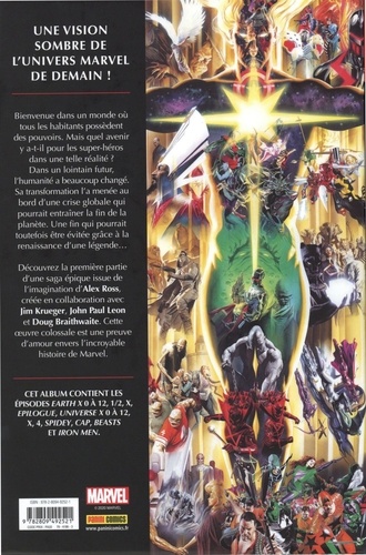 En 1997, l'incroyable peintre Alex Ross (Marvels, Kingdom Come) crée Earth X, une gigantesque saga futuriste décrivant ce que pourrait être l'avenir de l'univers Marvel. Quasiment tous les personnages Marvel y font une apparition, et beaucoup de questions concernant l'arrivée des super-pouvoirs sur la Terre y sont soulevées. Ross, toujours assisté de Jim Krueger, fera de cette épopée une trilogie avec Universe X et Paradise X. La trilogie Earth X / Universe X / Paradise X d'Alex Ross et Jim Krueger est l'une des oeuvres les plus massives et les plus ambitieuses jamais créées dans l'univers Marvel. Ce premier tome gigantesque de plus de 1300 pages regroupe l'intégralité des deux premières sagas ainsi que les épisodes annexes.
