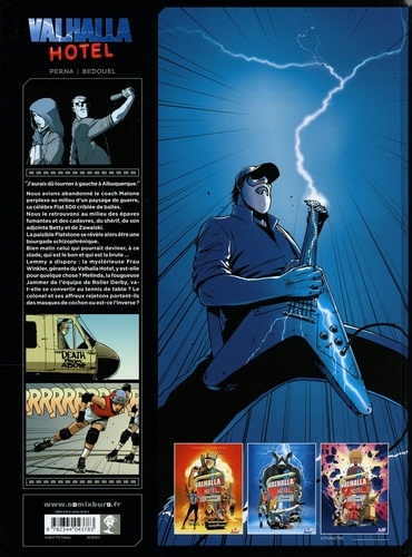 "J'aurais dû tourner à gauche à Albuquerque ! " On a les citations que l'on mérite. En l'occurrence celle-ci, devenue culte aux USA : le coach Malone l'a empruntée à Bugs Bunny. Nous l'avions laissé à la fin du premier épisode, perplexe au milieu d'un paysage de guerre, dans le camp retranché d'El Loco. Sa célèbre Fiat 500 criblée de balles. Au milieu des épaves fumantes et des cadavres, le Shérif, Betty son adjointe et Zawalski donnent le LA de ce nouvel épisode, encore plus rythmé, loufoque voire aussi supersonique qu'un riff de "Fast" d'Eddie Clarke (le mythique guitariste de Motorhead). La paisible Flatsone se révèle alors être une bourgade schizophrénique. Chaque personnage semble y jouer, plus ou moins volontairement, un double rôle. Bien malin celui qui pourrait deviner, à ce stade, qui est le "gentil" et qui est le "méchant" ... Si tant est que cela soit possible d'ailleurs. Lemmy a disparu, la mystérieuse Frau Winkler, gérante du Valhalla Hotel, y est-elle pour quelque chose ? Melinda la fougueuse Jammer (joueuse chargée de marquer les points) de l'équipe de Roller Derby locale, va-t-elle se convertir au tennis de table ? Le colonel et ses affreux rejetons portent-ils des masques de cochon ou est-ce l'inverse ? D'ailleurs, est-ce que, comme le suggère le proverbe Auvergnat, "tout est vraiment bon dans le cochon" ? Sur un rythme tendu de batterie lourde, Fabien Bedouel nous entraine dans une nouvelle aventure métallique aux relents de rock sudiste tandis que les accords binaires de la Stratocaster de Pat Perna nous plongent dans un univers surréaliste de thriller fantastique.