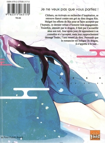 Chiharu, un écrivain en recherche d'inspiration, se retrouve fiancé contre son gré au dieu dragon Rin. Malgré les efforts de Rin pour se faire accepter par l'humain, ce dernier refuse d'honorer leur engagement. Toutefois, attendri par le dragon, il finit par l'accueillir sous son toit. Jour après jour, ils apprennent à se connaître et s'accepter, mais leur rapprochement dérange Tenko, l'ami renard du dieu. Persuadé que le romancier est indigne du dragon, il s'apprête à le tuer...