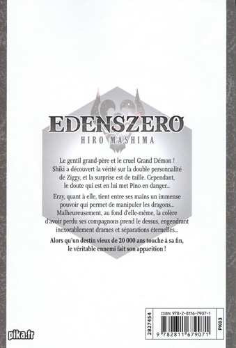 Le gentil grand-père et le cruel Grand Démon ! Shiki a découvert la vérité sur la double personnalité de Ziggy, et la surprise est de taille. Cependant, le doute qui est en lui met Pino en danger... Erzy, quant à elle, tient entre ses mains un immense pouvoir qui permet de manipuler les dragons... Malheureusement, au fond d'elle-même, la colère d'avoir perdu ses compagnons prend le dessus, engendrant inexorablement drames et séparations éternelles... Alors qu'un destin vieux de 20 000 ans touche à sa fin, le véritable ennemi fait son apparition !