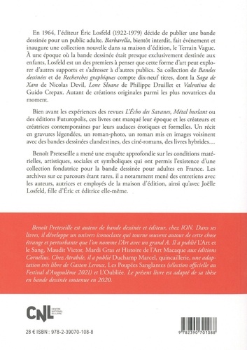 En 1964, l'éditeur Eric Losfeld (1922-1979) décide de publier une bande dessinée pour un public adulte. Barbarella, bientôt interdit, fait événement et inaugure une collection nouvelle dans sa maison d'édition, le Terrain Vague. A une époque où la bande dessinée était presque exclusivement destinée aux enfants, Losfeld est un des premiers à penser que cette forme d'art peut explorer d'autres supports et s'adresser à d'autres publics. Sa collection de Bandes dessinées et de Recherches graphiques compte dix-neuf titres, dont la Saga de Xam de Nicolas Devil, Lone Sloane de Philippe Druillet et Valentina de Guido Crepax. Autant de créations originales parmi les plus novatrices du moment. Bien avant les expériences des revues L'Echo des Savanes, Métal hurlant ou des éditions Futuropolis, ces livres ont marqué leur époque et les créateurs et créatrices contemporaines par leurs audaces érotiques et formelles. Un récit en gravures légendées, un roman-photo, un roman mis en images voisinent avec des bandes dessinées clandestines, des ciné-romans, des livres hybrides... Benoît Preteseille a mené une enquête approfondie sur les conditions matérielles, artistiques, sociales et symboliques qui ont permis l'existence d'une collection fondatrice pour la bande dessinée pour adultes en France. Les archives sur ce parcours étant rares, il a notamment mené des entretiens avec les auteurs, autrices et employés de la maison d'édition, ainsi qu'avec Joëlle Losfeld, fille d'Eric et éditrice elle-même.
