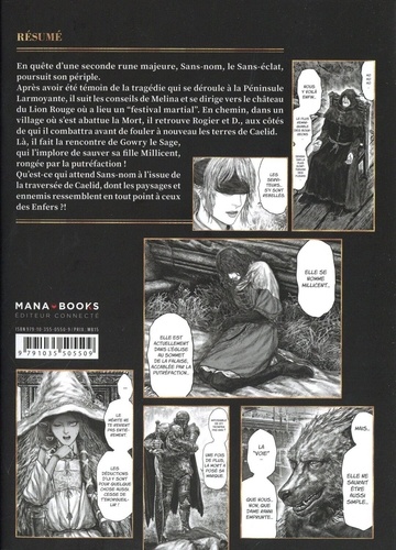 En quête d'une seconde rune majeure, Sans-nom, le Sans-éclat, poursuit son périple. Après avoir été témoin de la tragédie qui se déroule à la Péninsule Larmoyante, il suit les conseils de Melina et se dirige vers le château du Lion Rouge où a lieu un "festival martial". En chemin, dans un village où s'est abattue la Mort, il retrouve Rogier et D., aux côtés de qui il combattra avant de fouler à nouveau les terres de Caelid. Là, il fait la rencontre de Gowry le Sage, qui l'implore de sauver sa fille Millicent, rongée par la putréfaction ! Qu'est-ce qui attend Sans-nom à l'issue de la traversée de Caelid, dont les paysages et 4 ennemis ressemblent en tout point à ceux des Enfers ? !