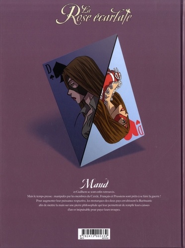 La série La Rose écarlate fêtera ses quinze ans en 2019 ! Avec plus 1 200 000 exemplaires vendus en langue française, les aventures de Maud et de son compagnon Guilhem ne cessent de conquérir de nombreux fans ! L'étau des membres du Cercle sur la Rose écarlate, sa famille et ses amis, ne cesse de se resserrer. Notre Rose est bien décidée à ne pas se laisser faire et est prête à tout pour sauver celui qu'elle aime, Guilhem, quitte à y laisser sa propre vie. Mais les menaces ne concernent pas qu'elle et ses proches : une guerre pourrait également éclater en Europe. Pourra-t-elle l'empêcher ?