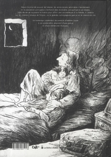 Depuis la prise de pouvoir de Salazar, les arrestations arbitraires s'enchainent et la population portugais enfonce dans la misère. Lorsqu'il perd son emploi, João décide de rejoindre la France pour offrir une meilleure sa famille. Il s'élance sur les chemins sinueux de l'espoir, où la guardia civil espagnole guette et le silence est roi. Lin hommage solidement documenté d'Adeline Casier a son grand-père, empreint d'une poésie et d'une mélancolie rêveuses.
