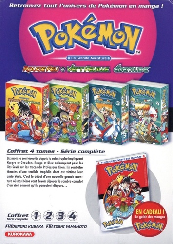 Une série inédite en 4 tomes basée sur les célèbres jeux vidéo : Pokémon version Rouge Feu , Pokémon version Vert Feuille et Pokémon version Emeraude . Six mois se sont écoulés depuis la catastrophe impliquant Kyogre et Groudon. Rouge et Bleu embarquent pour les Iles Sevii sur les traces du Professeur Chen. Ils vont être témoins d'une terrible tragédie dont est victime leur amie Verte. C'est le début d'une nouvelle grande aventure où nos héros vont devoir déjouer le sombre complot d'un vieil ennemi qu'ils pensaient disparu...