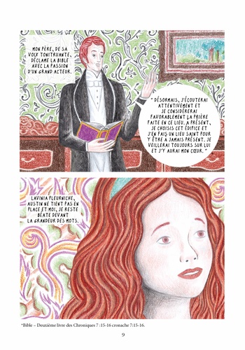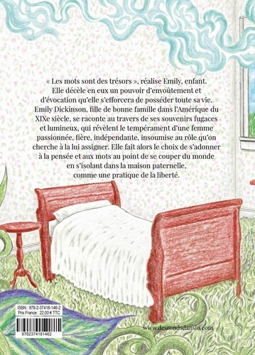 "Les mots sont des trésors" , réalise Emily, enfant. Elle décèle en eux un pouvoir d'envoûtement et d'évocation qu'elle s'efforcera de posséder toute sa vie. Emily Dickinson, fille de bonne famille dans l'Amérique du XIXe siècle, se raconte au travers de ses souvenirs fugaces et lumineux, qui révèlent le tempérament d'une femme passionnée, fière, indépendante, insoumise au rôle qu'on cherche à la lui assigner. Elle fait alors le choix de s'adonner à la pensée et aux mots au point de se couper du monde en s'isolant dans la maison paternelle, comme une pratique de la liberté. Après la biographie de Virginia Woolf en bande dessinée, l'autrice italienne, Liuba Gabriele nous offre un magnigique roman graphique sur une nouvelle icone féministe. La beauté des planches et la poésie qu'il en ressort, s'approchent au plus près de l'écriture de la grande poétesse américaine.