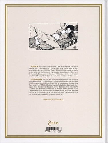 Bangkok, époque contemporaine. Une jeune femme de 19 ans, que l'on vient de marier à un bourgeois expatrié, s'offre à ses amants et amantes dans la moiteur de l'Orient. Elle est sous la coupe de Mario, un bel Italien qui deviendra son "professeur de jouissance". Son nom : Emmanuelle. Ses aventures, d'abord publiées dans la clandestinité, en feront bientôt le symbole de la jeune femme moderne et libérée.