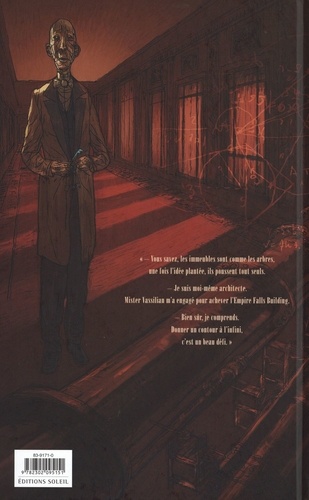 Signé J. C. Deveney au scénario et Tommy Redolfi au dessin, Empire Falls Building est une histoire de création et de contrainte, de désir et de frustration, de béton et d'acier. Edgard Whitman, jeune architecte prometteur, est engagé par le richissime homme d'affaires Kosmo Vassilian pour achever la construction de l'Empire Falls Building, son célèbre et monumental hôtel new-yorkais, pourtant flambant neuf. L'architecte est alors loin d'imaginer que cette entreprise va le conduire au-delà de ce qu'il pensait réalisable, au-delà de ses propres limites...