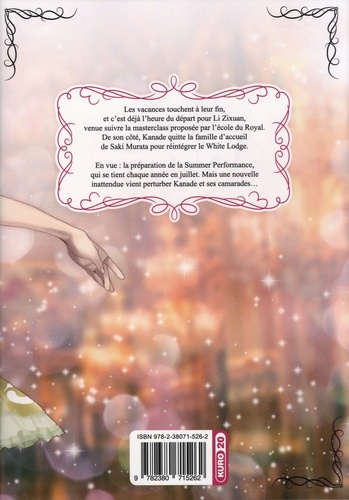 Manga de danse au graphisme sublime, En scène ! décrit avec passion et drame humain les premiers pas d'une jeune ballerine dans la compétition classique. Les vacances touchent à leur fin, et c'est déjà l'heure du départ pour Li Zixuan, venue suivre la masterclass proposée par l'école du Royal. De son côté, Kanade quitte la famille d'accueil de Saki Murata pour réintégrer le White Lodge. En vue : la préparation de la Summer Performance, qui se tient chaque année en juillet. Mais une nouvelle inattendue vient perturber Kanade et ses camarades...