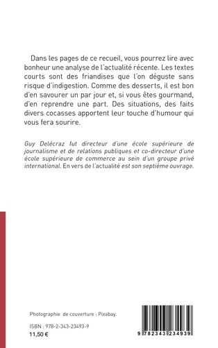 Dans les pages de ce recueil, vous pourrez lire avec bonheur une analyse de l'actualité récente. Les textes courts sont des friandises que l'on déguste sans risque d'indigestion. Comme des desserts, il est bon d'en savourer un par jour et, si vous êtes gourmand, d'en reprendre une part. Des situations, des faits divers cocasses apportent leur touche d'humour qui vous fera sourire.