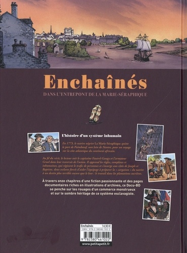 En 1773, le navire négrier La Marie-Séraphique quitte le port de Paimboeuf, non loin de Nantes, pour un voyage sur la côte atlantique du continent africain. Au fil du récit, le lecteur suit le capitaine Fautrel-Gaugy et l'armateur Gruel dans leur traversée de l'Océan. Il apprend les règles, complexes et inhumaines, qui régissent le trafic de personnes et s'insurge aux côtés de Joseph et Baptiste, deux esclaves forcés d'aider l'équipage à préparer la "cargaison" du navire à un destin plus terrible encore que le leur : le travail dans les plantations sucrières. A travers onze chapitres d'une fiction passionnante et des pages documentaires riches en illustrations d'archives, ce Docu-BD se penche sur les rouages d'un commerce monstrueux et sur le sombre héritage de ce système esclavagiste.