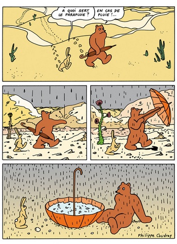 Que ce soit sur ses propres scénarios ou sur ceux de son frère Jean-Luc, les livres de Philippe Coudray ont marqué des lecteurs en France…mais aussi en Chine ou au Japon ! Outre L'Ours Barnabé, petit miracle d'humour et d'imagination désormais édité à La Boite à Bulles, Philippe Coudray est le dessinateur de Théocrite, de l'Empereur nous fait marcher et des Primates nous font marcher sur scénario de son frère jumeau Jean-Luc. Artiste peintre reconnu (il considère la BD et la peinture comme des disciplines complémentaires), il travaille régulièrement dans la revue “Psikopat”, animait une rubrique cryptozoologique dans “Capsule Cosmique” (Milan Presse), rubrique qui lui a servi de base à l'élaboration de son Guide des animaux cachés.