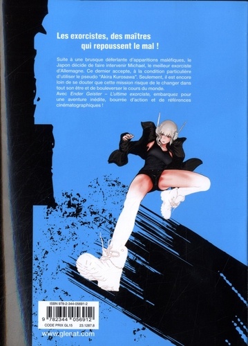 Les exorcistes, des maîtres qui repoussent le mal Michael est un exorciste d'Allemagne réputé, enchaînant les missions dans tous les coins du monde à affronter trolls, gobelins, sorcières et autres monstres mytiques. Sa petite faiblesse : un amour débordant pour le cinéma d'action. Quand il est envoyé au Japon, c'est l'occasion rêvée pour lui de prendre un nouveau pseudonyme : "Akira Kurosawa" ! Seulement, il est encore loin de se douter que cette mission risque de le changer dans tout son être et de bouleverser le cours du monde. Publié sur la plateforme Cycomi, Ender Geister est en quelque sorte une réponse du manga aux webtoon : des chapitres accessibles en ligne, faciles à lire, mais avec une mise en page bien proportionnée et non linéaire, qui permettent à tout type de lecteur de profiter d'une histoire palpitante. La série s'affranchit également des impératifs des magazines papier, pour ne pas se brider sur les scènes violentes et sexuelles. Drôle et bien écrit, Ender geister vous proposera un pur divertissement pour tous les fans de manga et de cinéma d'action. Une formule qui a déjà fait ses preuves, puisque la série compte déjà 600 000 ventes au Japon, avec une rupture immédiate à chaque parution d'un tome papier !