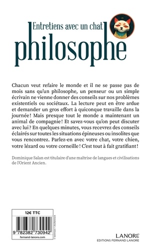 Chacun veut refaire le monde et il ne se passe pas de mois sans qu'un philosophe, un penseur ou un simple écrivain ne vienne donner des conseils sur nos problèmes existenciels ou sociétaux. La lecture peut en être ardue et demander un gros effort à quiconque travaille dans la journée ! mais presque tout le monde a maintenant un animal de compagnie ! Et savez-vous qu'on peut discuter avec lui ? En quelques minutes, vous recevrez des conseils éclairés sur toutes les situations épineuses ou insolites que vous rencontrez. Parlez-en avec votre chat, votre chien, votre lézard ou votre corneille ! C'est tout à fait gratifiant !